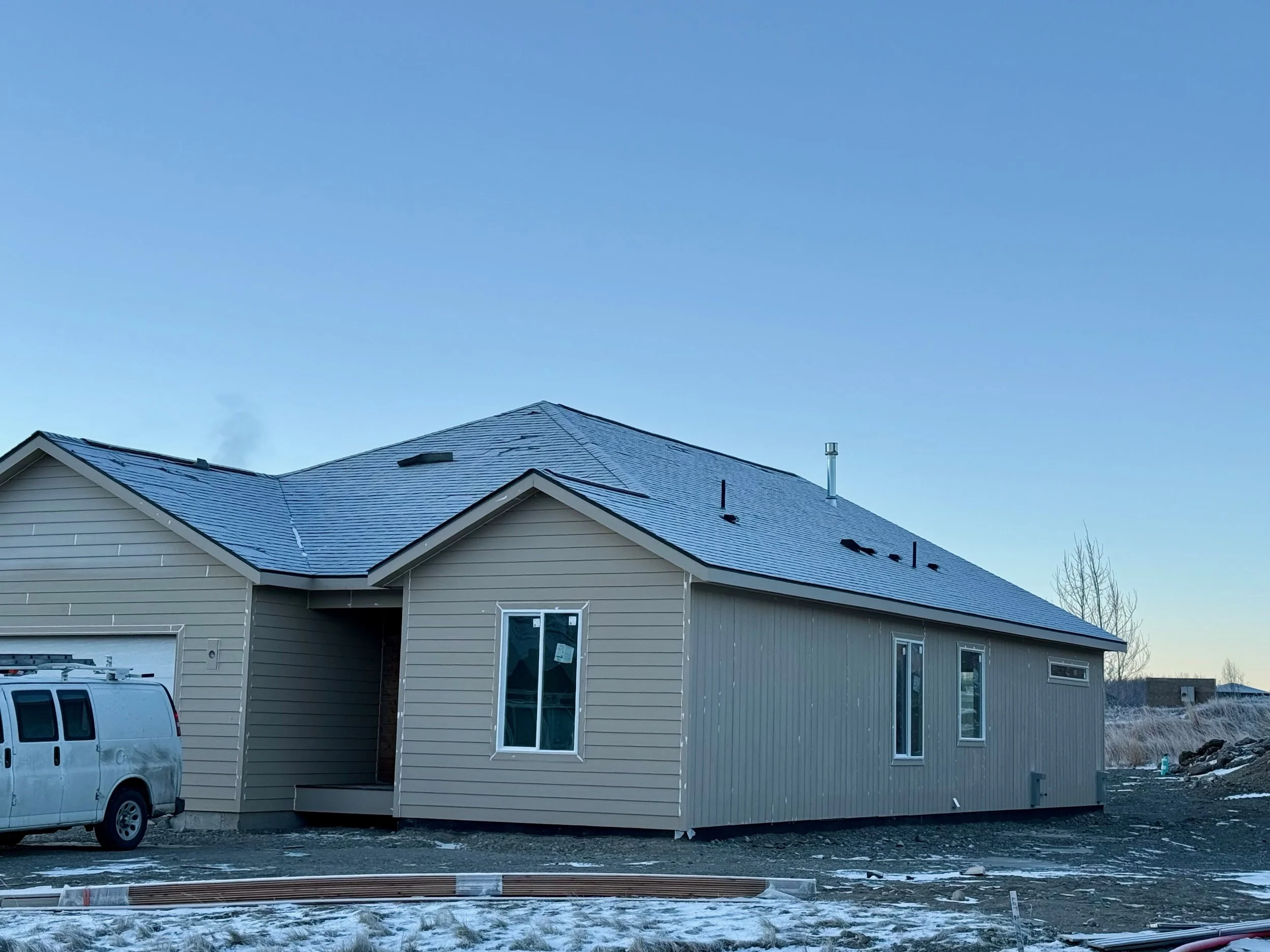 The estimated completion day is 2/27/26. You still have time to select quartz countertops, tile backsplash, carpet and exterior paint color! Call LIZ at 907-360-3821 for details